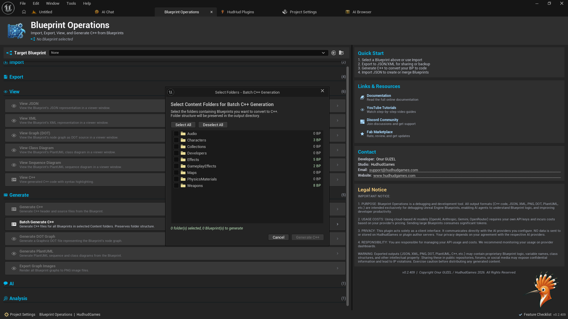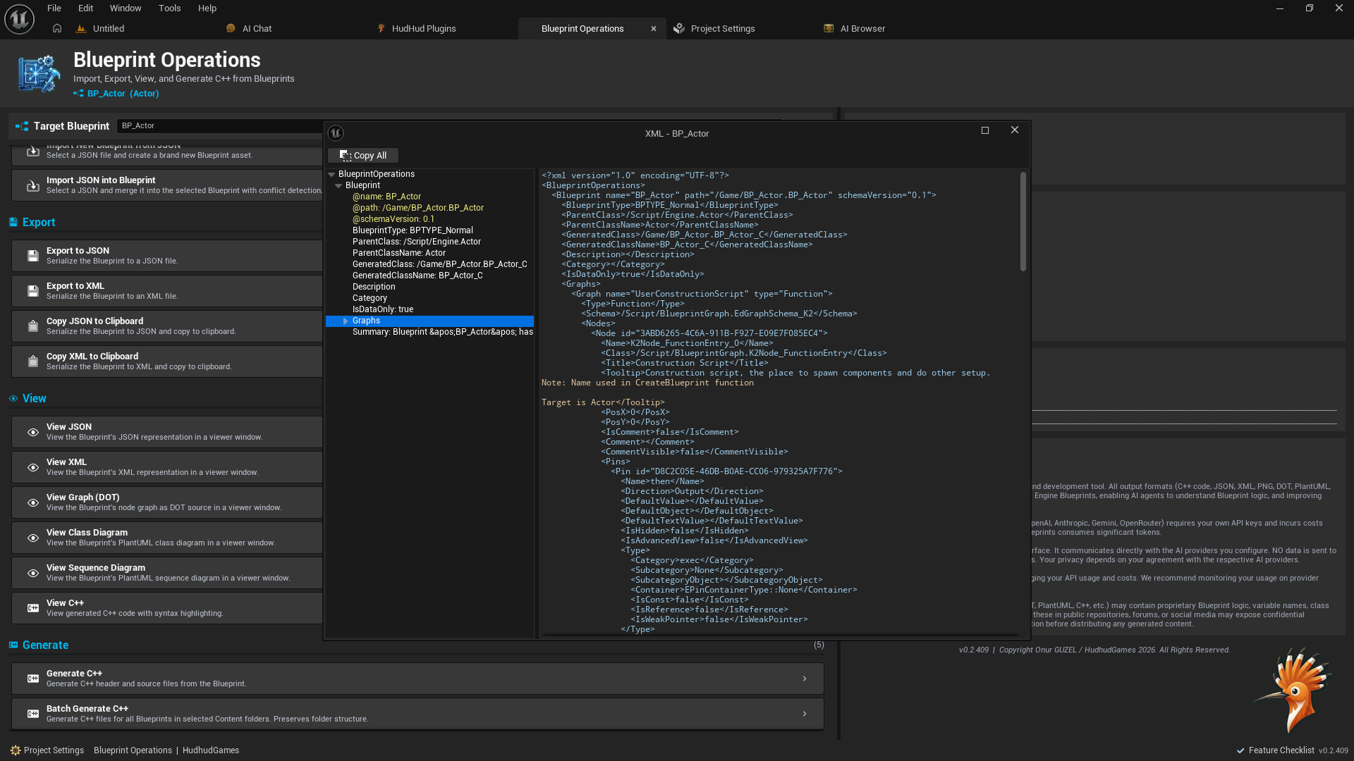 AI-Powered Blueprint Export, Analysis, C++ Generation & Visual Inspector for UE