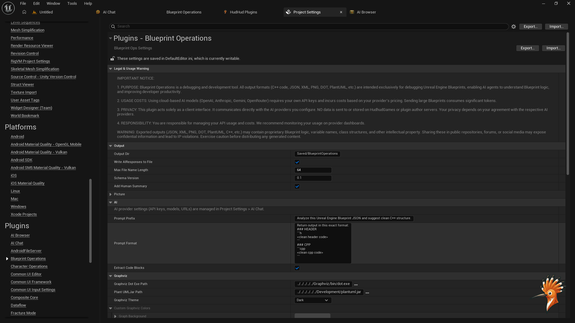 All settings accessible via Project Settings > Plugins > Blueprint Operations: